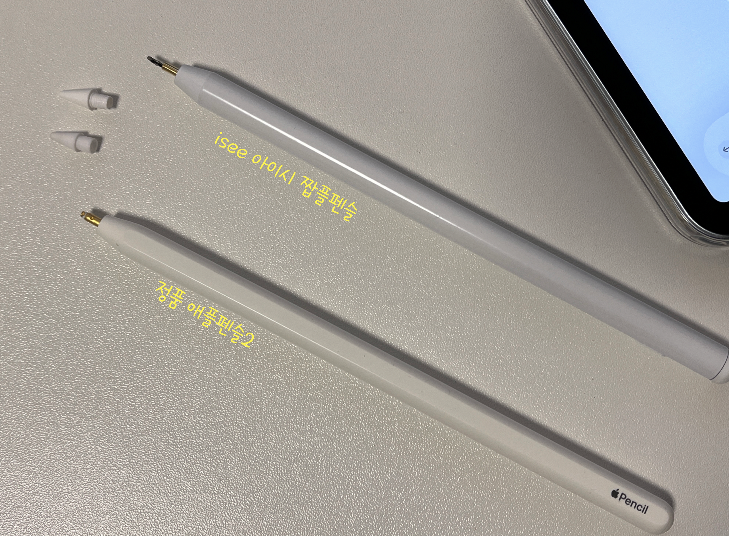 결국 가장 좋은 짭플펜슬은, 펜촉이 정품과 호환되며 팜리젝선 완벽하며, 옆에 잘달라 붙는 것