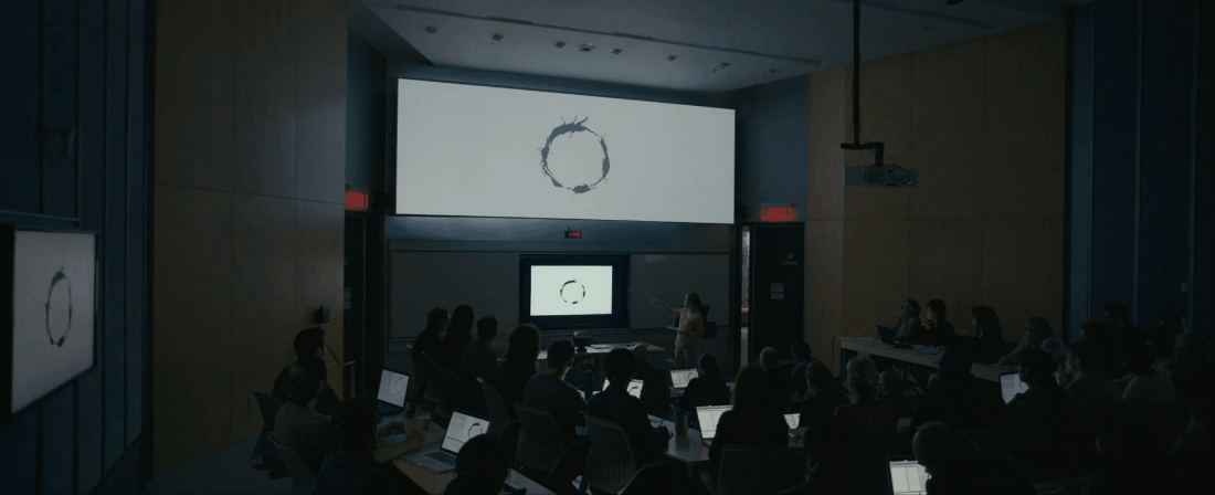 그러나 그들이 일종의 '문자'를 사용하고 음성이 아닌 시각으로 커뮤니케이션이 가능할 것이라는 추정은 두번째 섹션에서 칠판을 가지고 들어가서야 가능하게 되었다. 영화적 장치겠지만 두 전문가의 전문성에 약간의 틈이 보이는 장면이었다. 내부를 설명할 때 루이스나 이안이 살짝 언급이라도 했으면 좋았을 것 같다.
