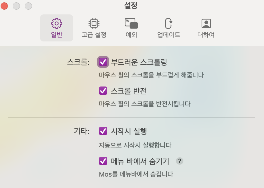 2. mos ㅣ 부드러운 마우스 스크롤 & 스크롤 반전